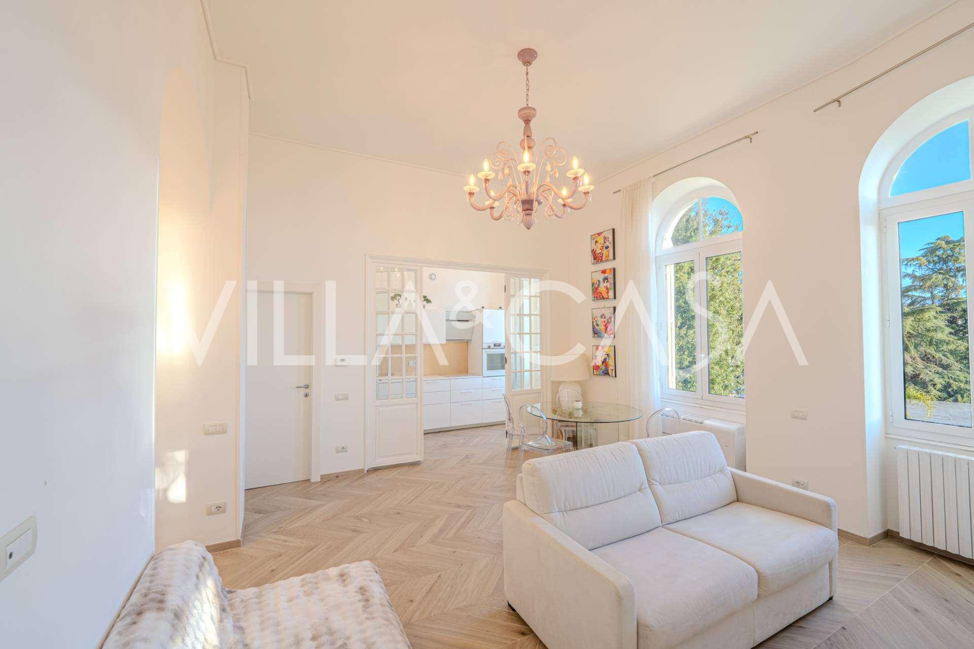 تُعرض للإيجار شقة من غرفتين في سانريمو، بمساحة 73 متر مربع مع إطلالة على البحر. تقع في الطابق الثاني من مبنى مجهز بمصعد وتضم غرفة معيشة، غرفة نوم مع شرفة، مطبخ وحمام. الشقة في حالة ممتازة، مزودة بنوافذ جديدة، مكيف هواء، أرضيات باركيه وتدفئة مستقلة. مؤثثة بالكامل. يشمل سعر الإيجار مكانًا في المرآب. تقع الشقة في مجمع سكني مغلق يحتوي على مسبح، حديقة، منطقة استراحة ومكان للشواء. تبعد عن وسط المدينة والبحر 7 دقائق سيرًا على الأقدام.