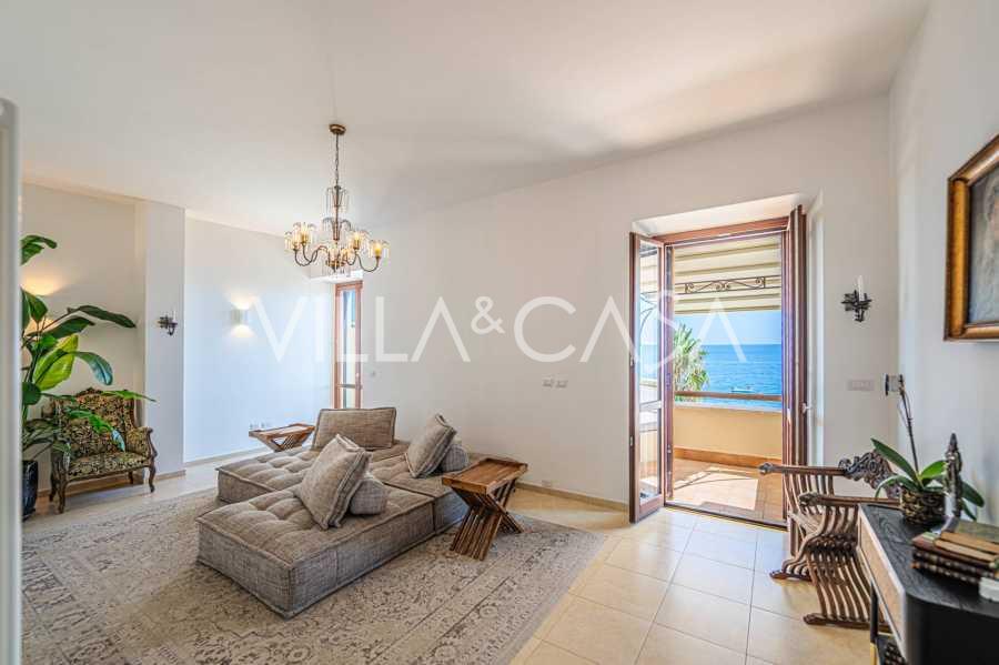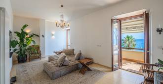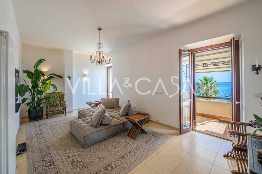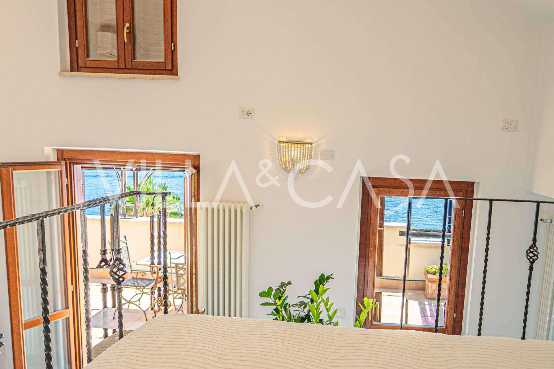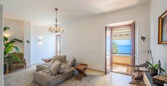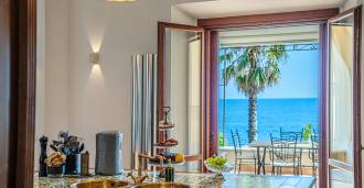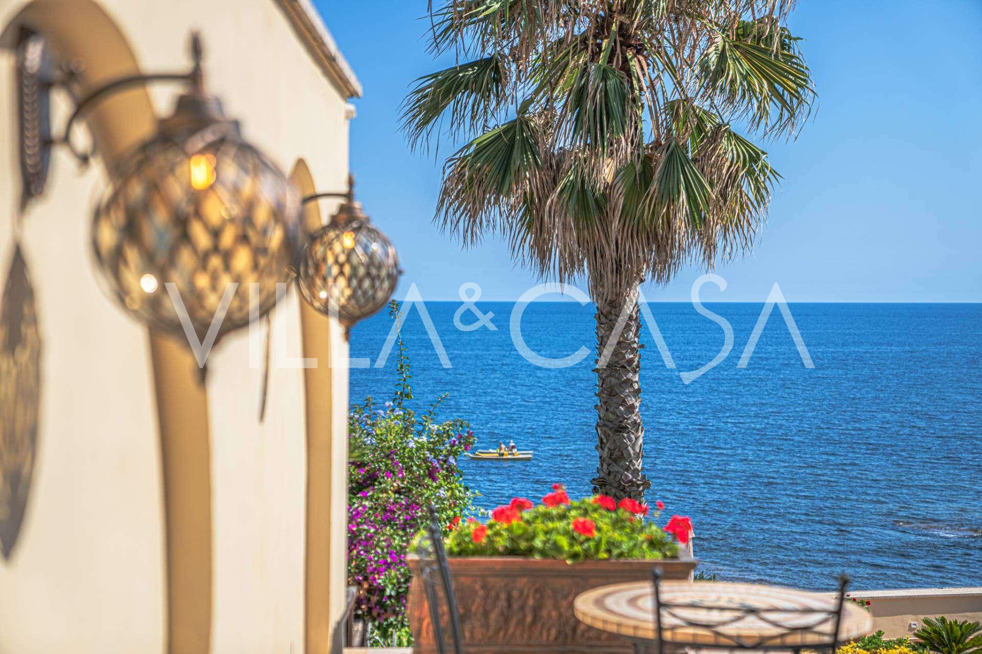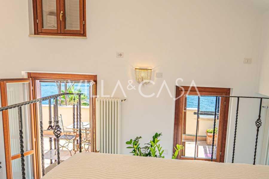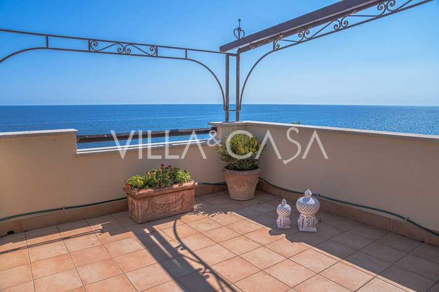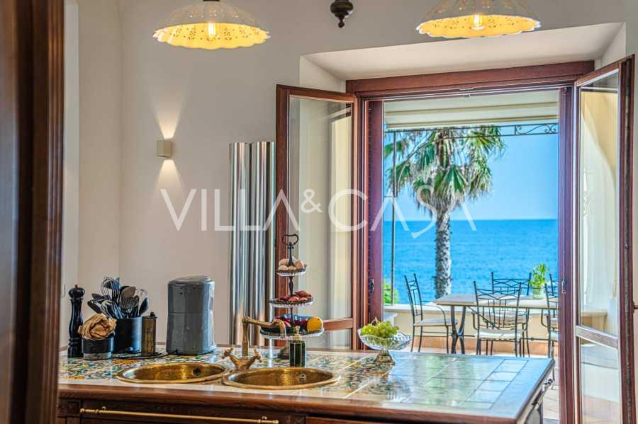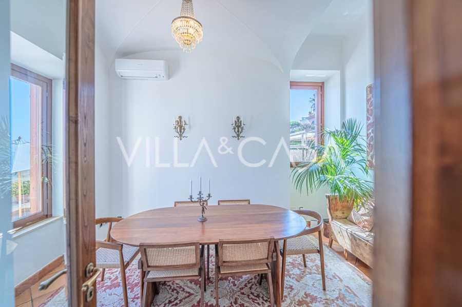 تقدم النوافذ إطلالة بانورامية بزاوية 180 درجة على البحر، حيث يملأ الأفق الأزرق كل مساحة داخلية ويمتد إلى التراسات البانورامية الواسعة. تخلق المساحات الداخلية، ذات الأسقف العالية التي تزيد عن ثلاثة أمتار والأرضيات الفخارية من ذلك الوقت والسلم الرخامي والمدفأة، جوًا من الأناقة الدائمة والمتقنة.