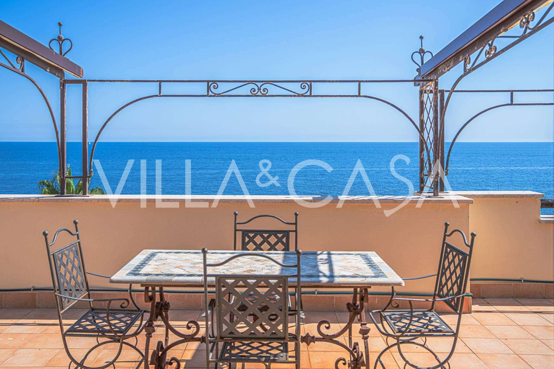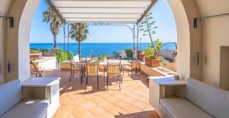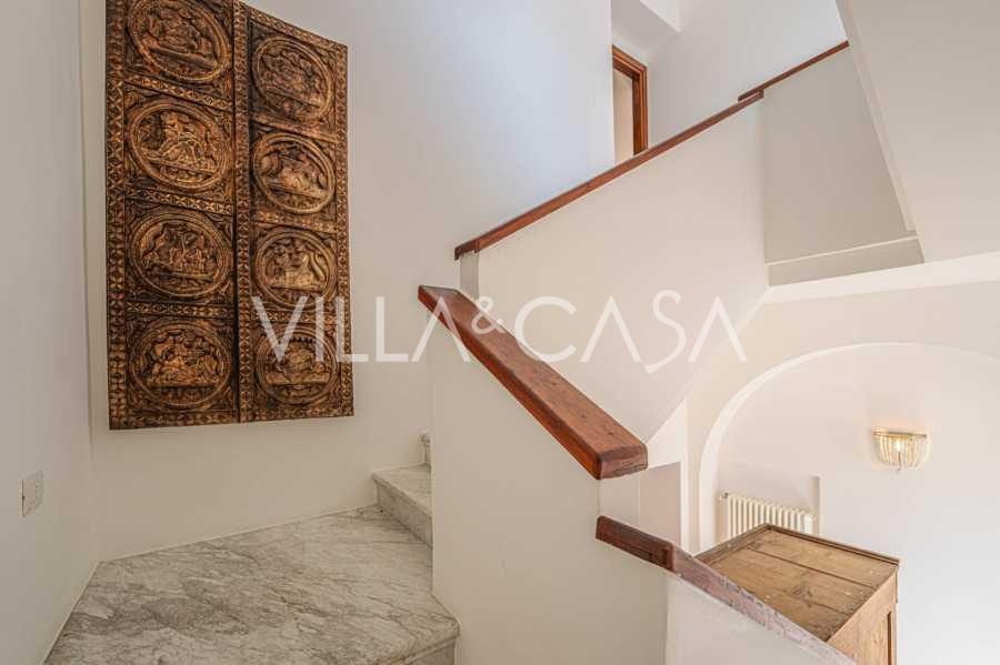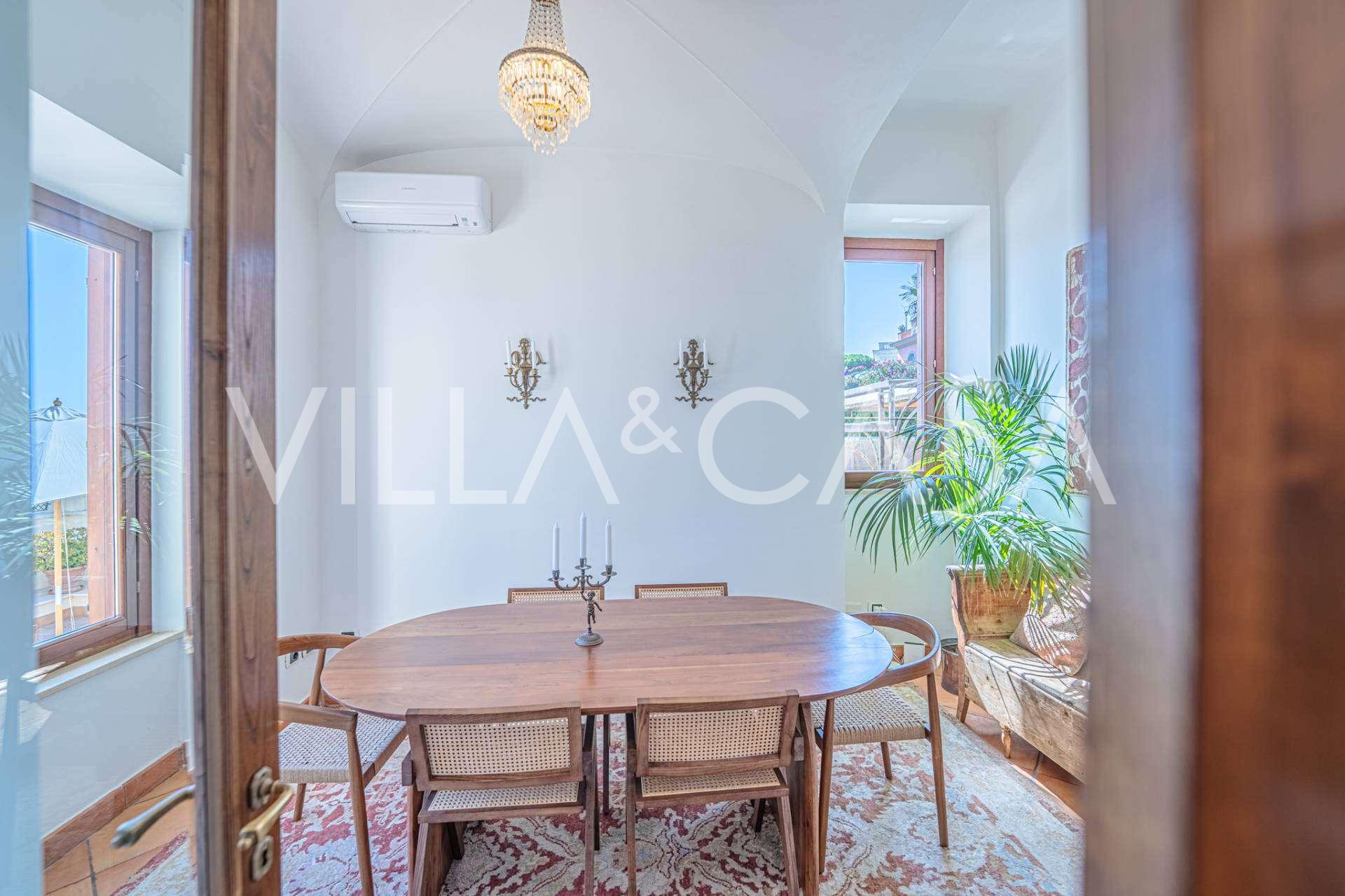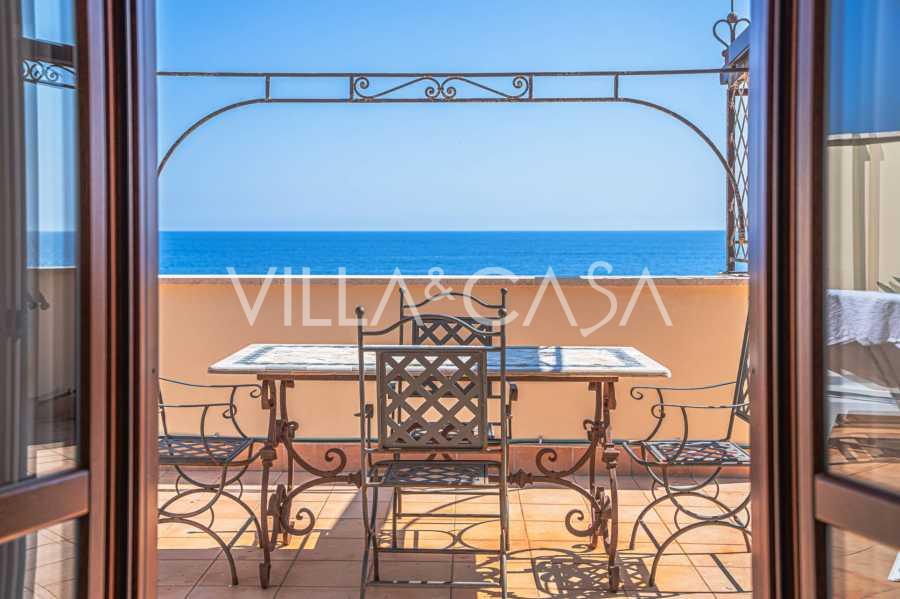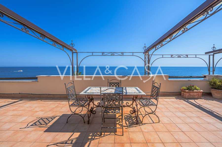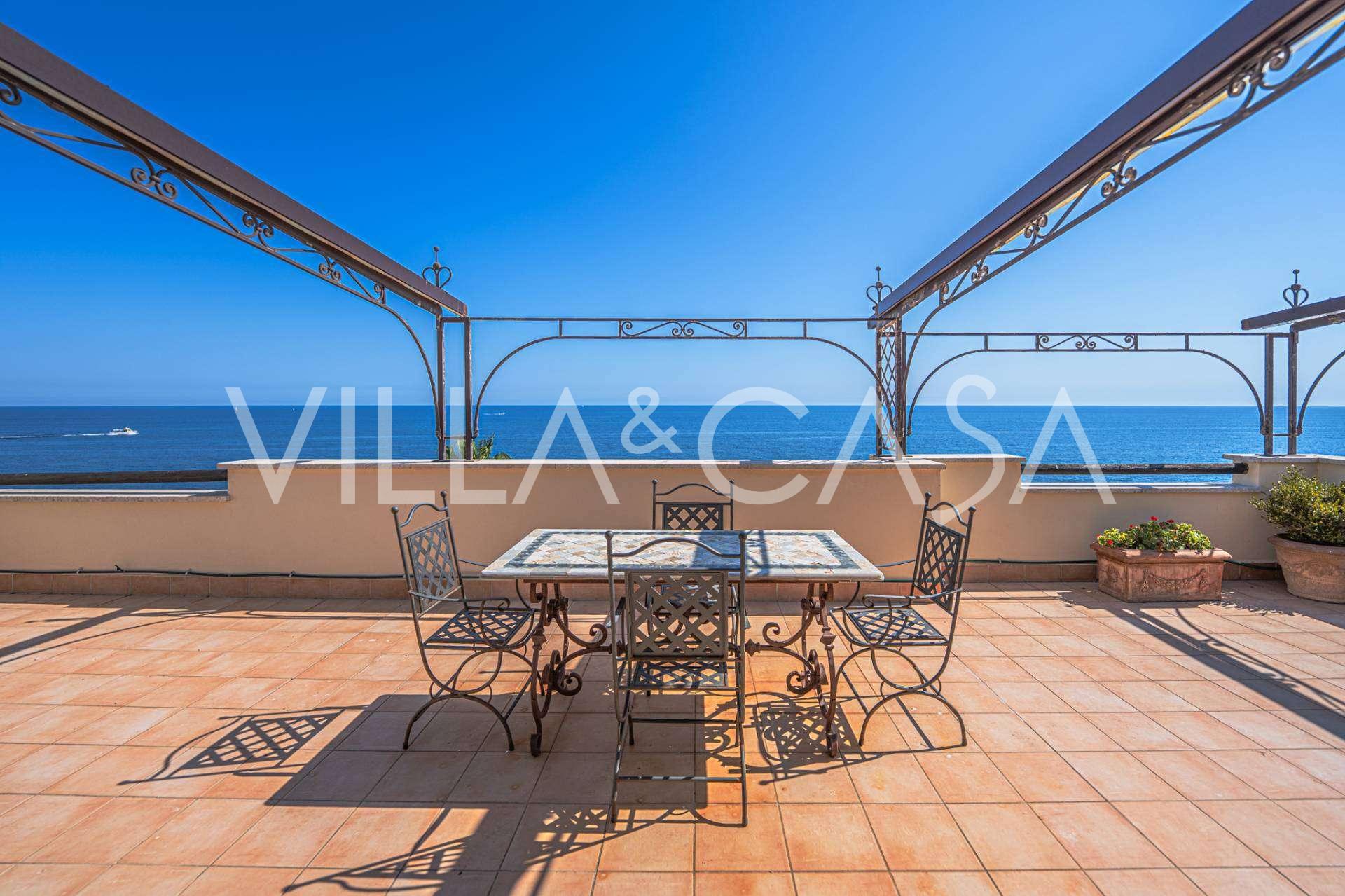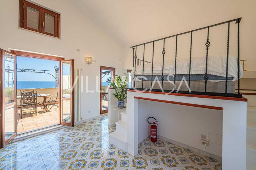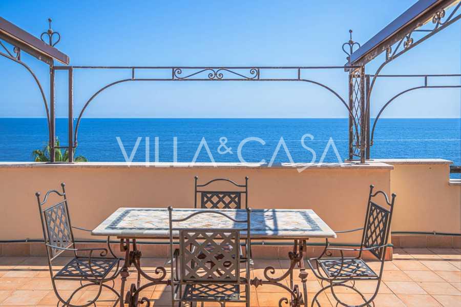 تقدم النوافذ إطلالة بانورامية بزاوية 180 درجة على البحر، حيث يملأ الأفق الأزرق كل مساحة داخلية ويمتد إلى التراسات البانورامية الواسعة. تخلق المساحات الداخلية، ذات الأسقف العالية التي تزيد عن ثلاثة أمتار والأرضيات الفخارية من ذلك الوقت والسلم الرخامي والمدفأة، جوًا من الأناقة الدائمة والمتقنة.