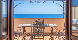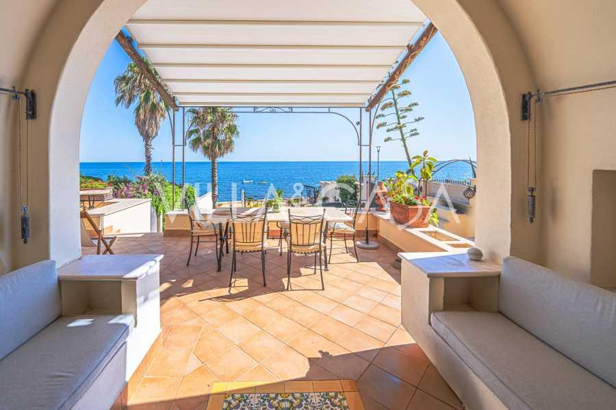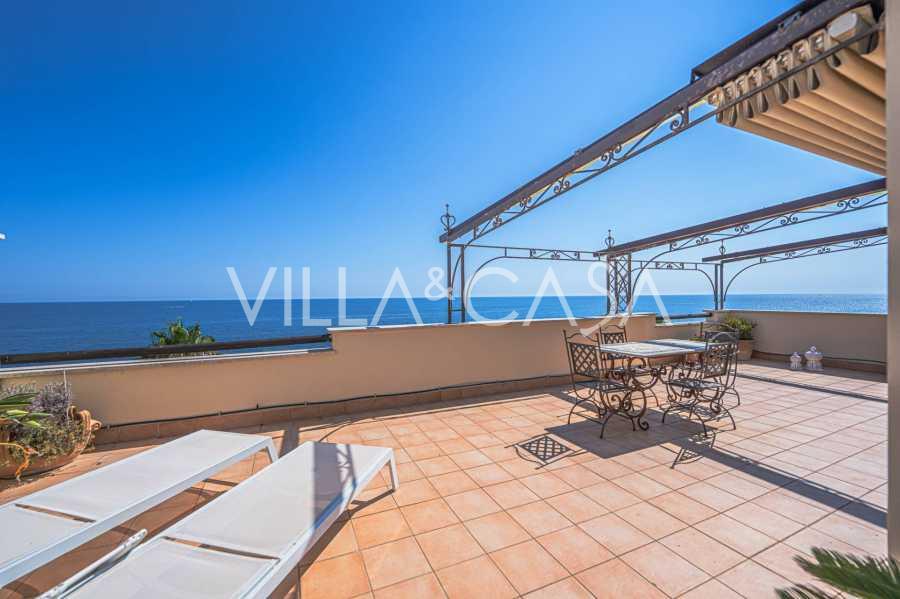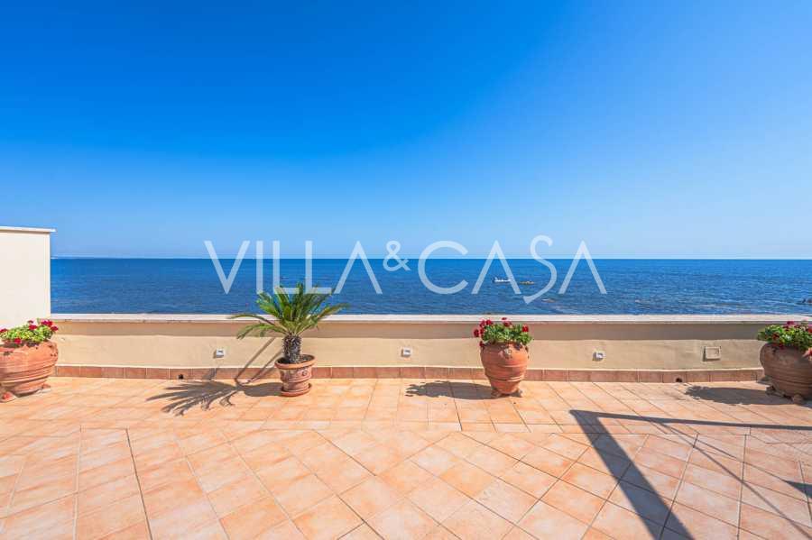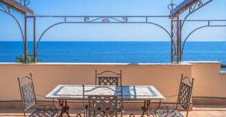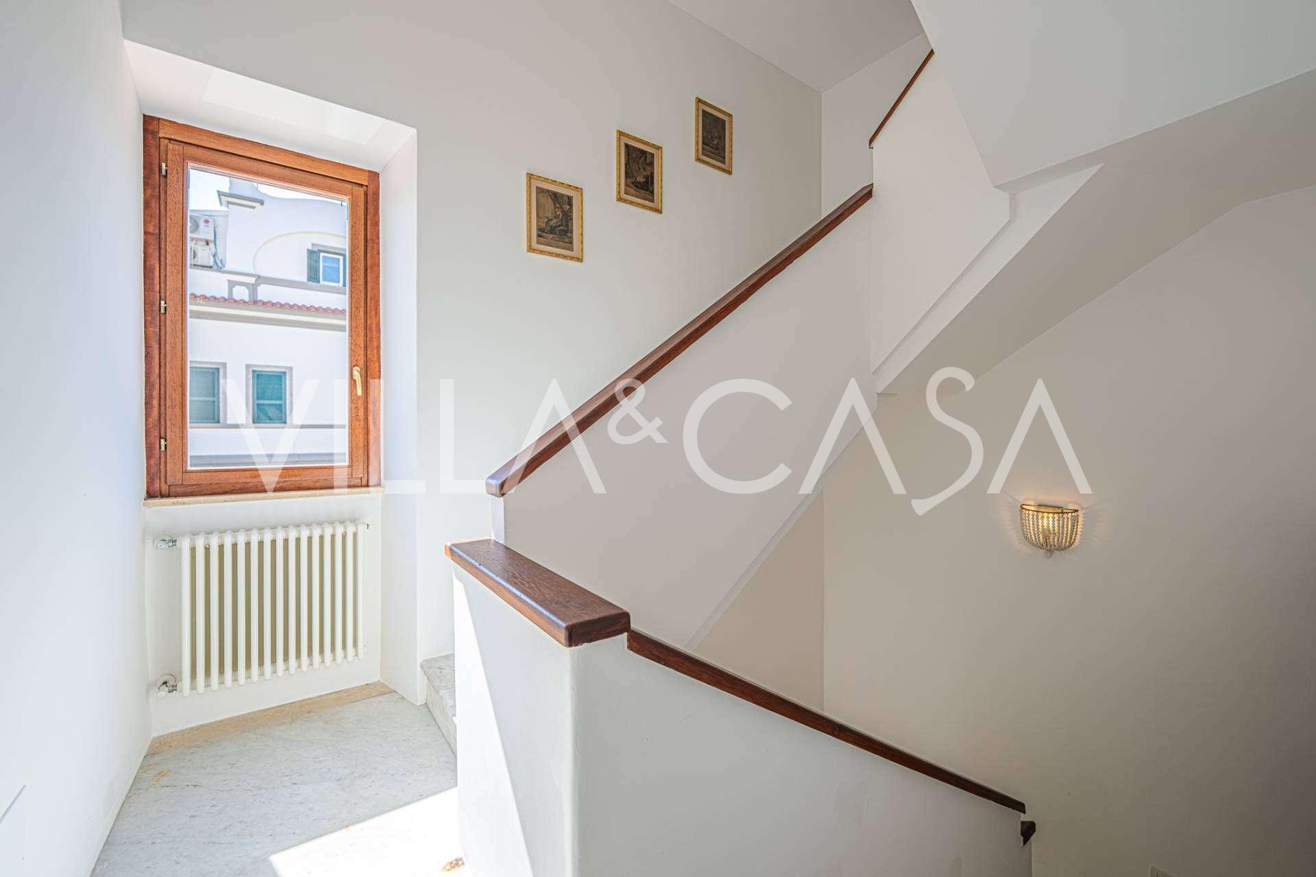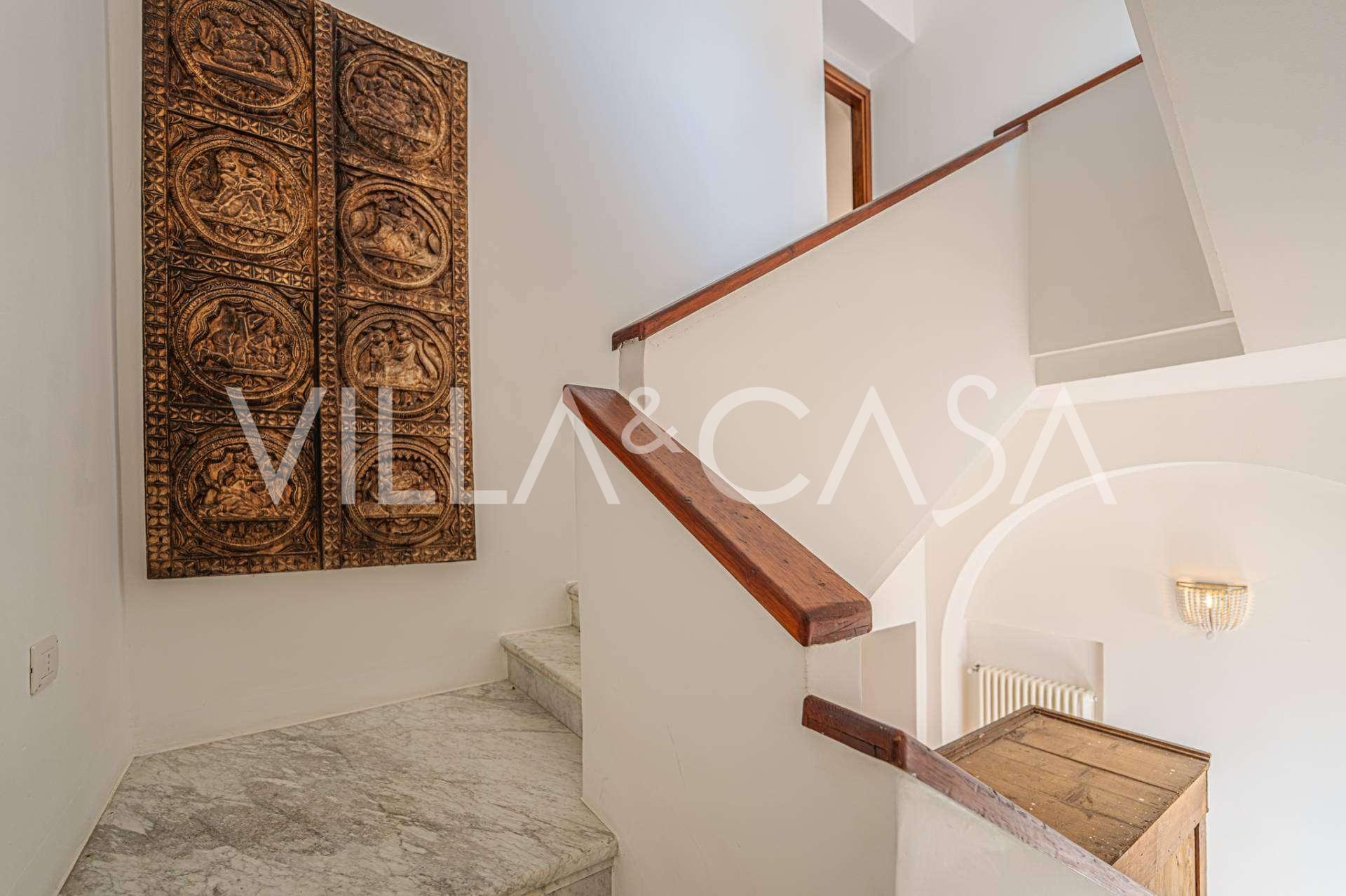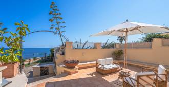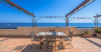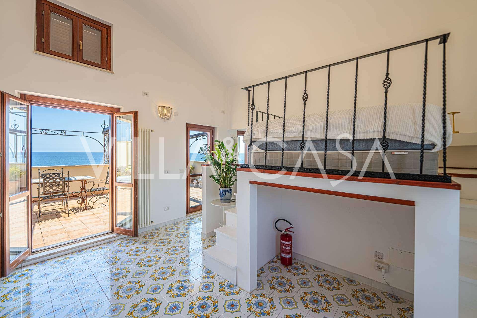 تقدم النوافذ إطلالة بانورامية بزاوية 180 درجة على البحر، حيث يملأ الأفق الأزرق كل مساحة داخلية ويمتد إلى التراسات البانورامية الواسعة. تخلق المساحات الداخلية، ذات الأسقف العالية التي تزيد عن ثلاثة أمتار والأرضيات الفخارية من ذلك الوقت والسلم الرخامي والمدفأة، جوًا من الأناقة الدائمة والمتقنة.
