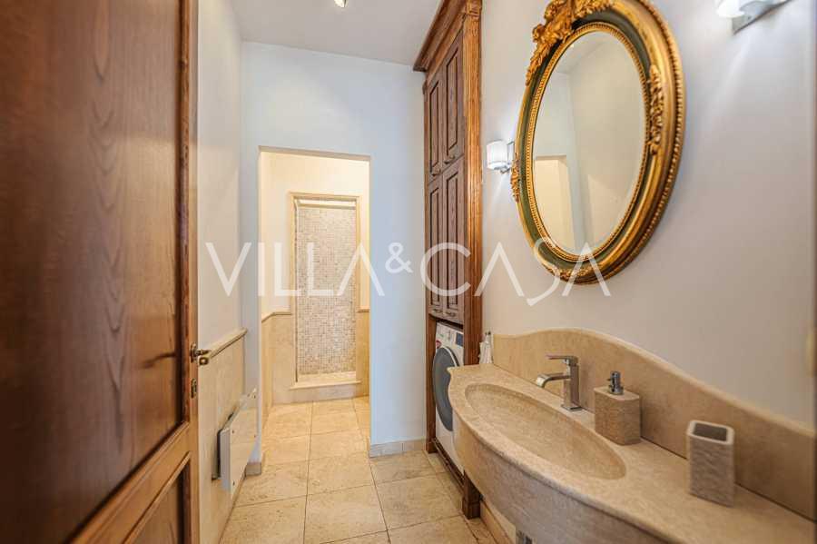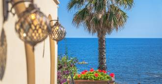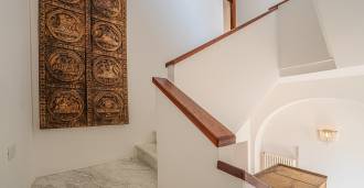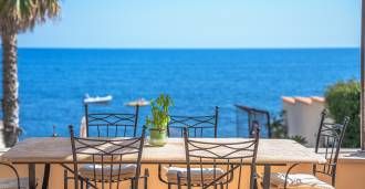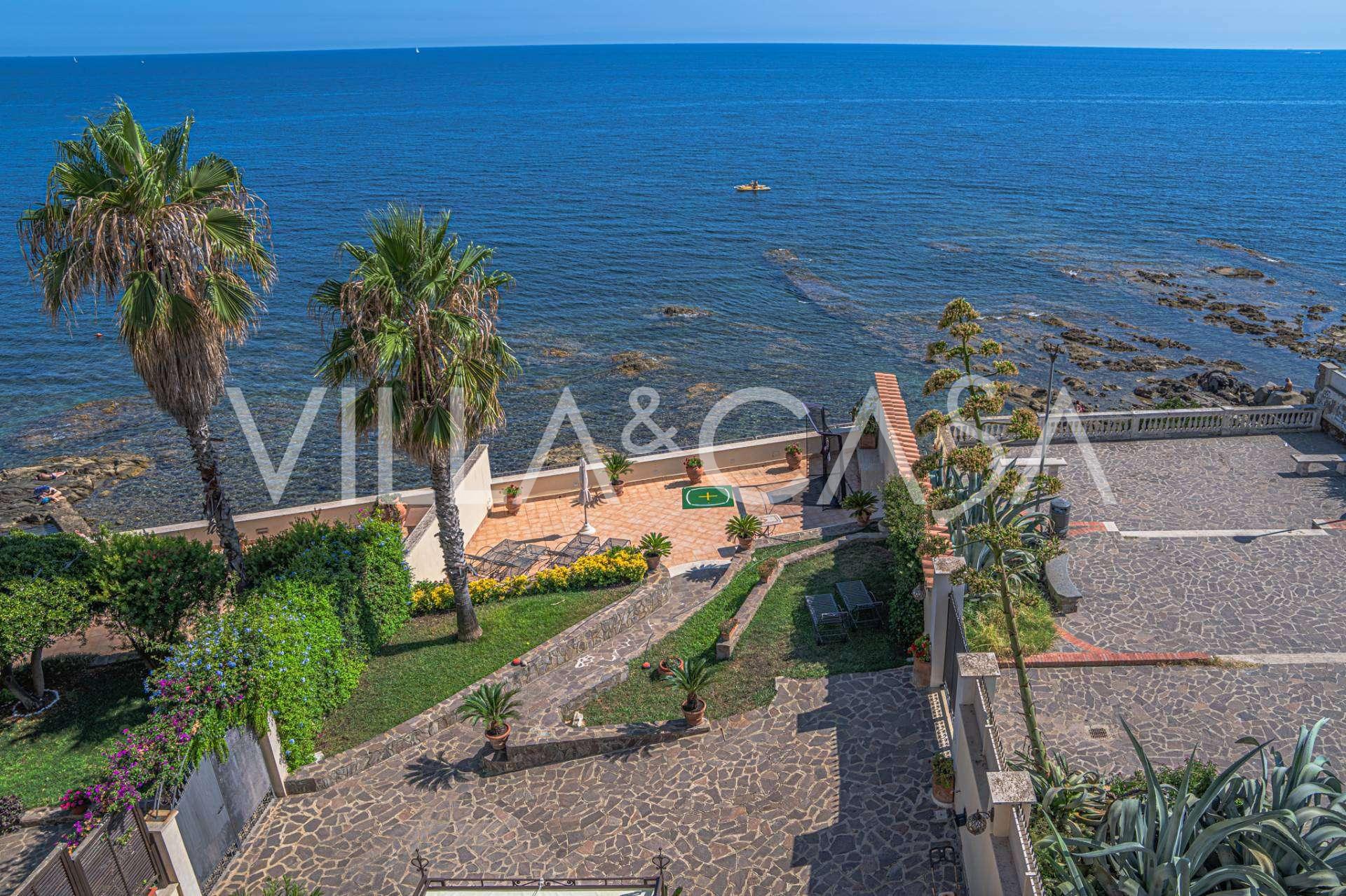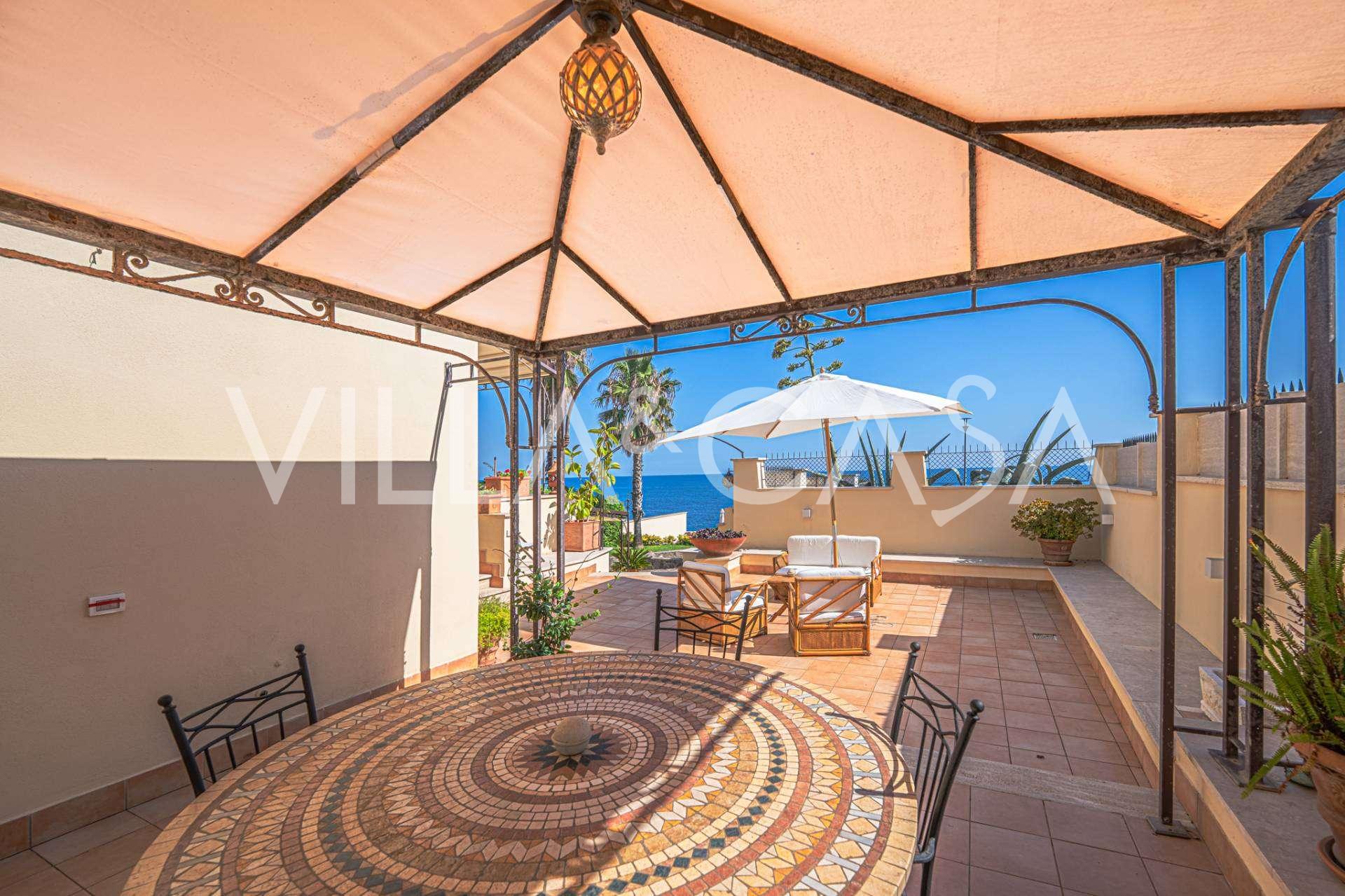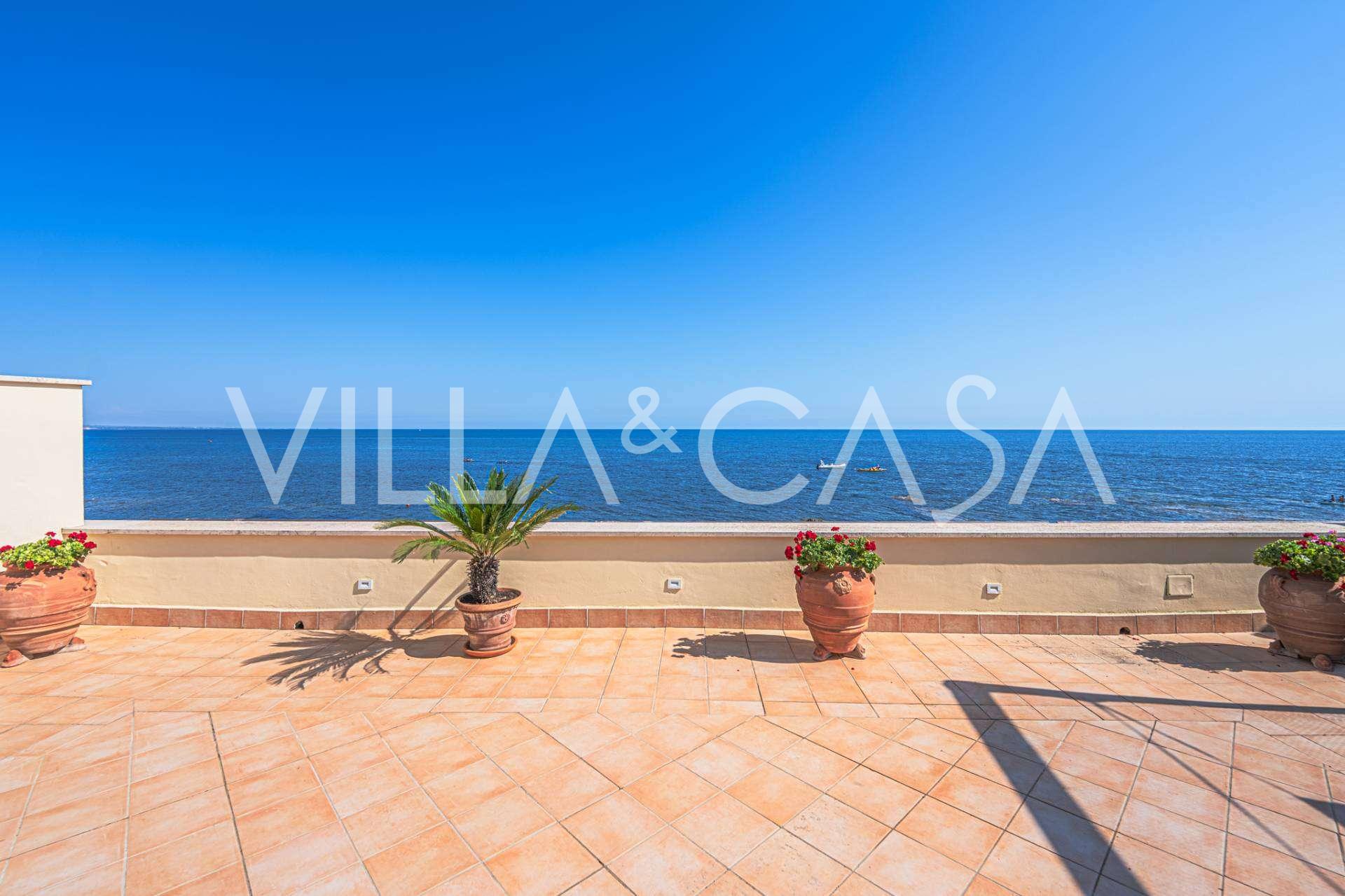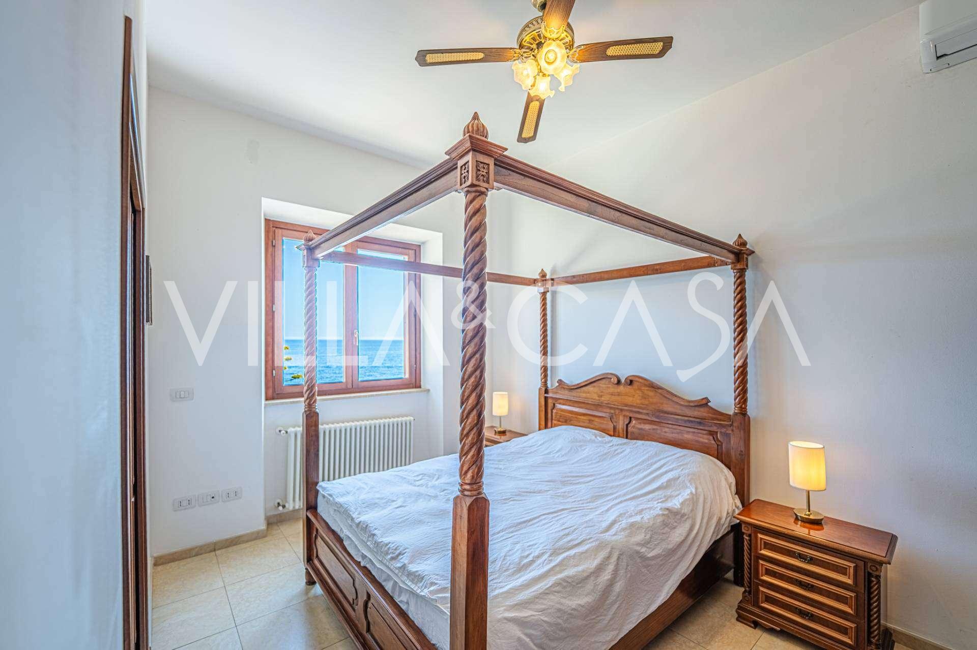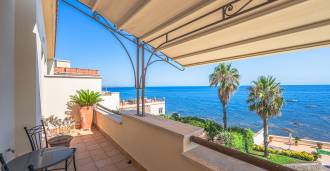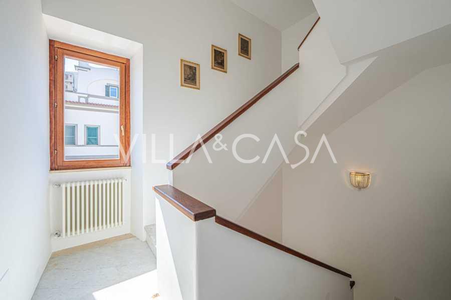 تقدم النوافذ إطلالة بانورامية بزاوية 180 درجة على البحر، حيث يملأ الأفق الأزرق كل مساحة داخلية ويمتد إلى التراسات البانورامية الواسعة. تخلق المساحات الداخلية، ذات الأسقف العالية التي تزيد عن ثلاثة أمتار والأرضيات الفخارية من ذلك الوقت والسلم الرخامي والمدفأة، جوًا من الأناقة الدائمة والمتقنة.
