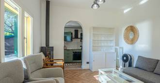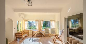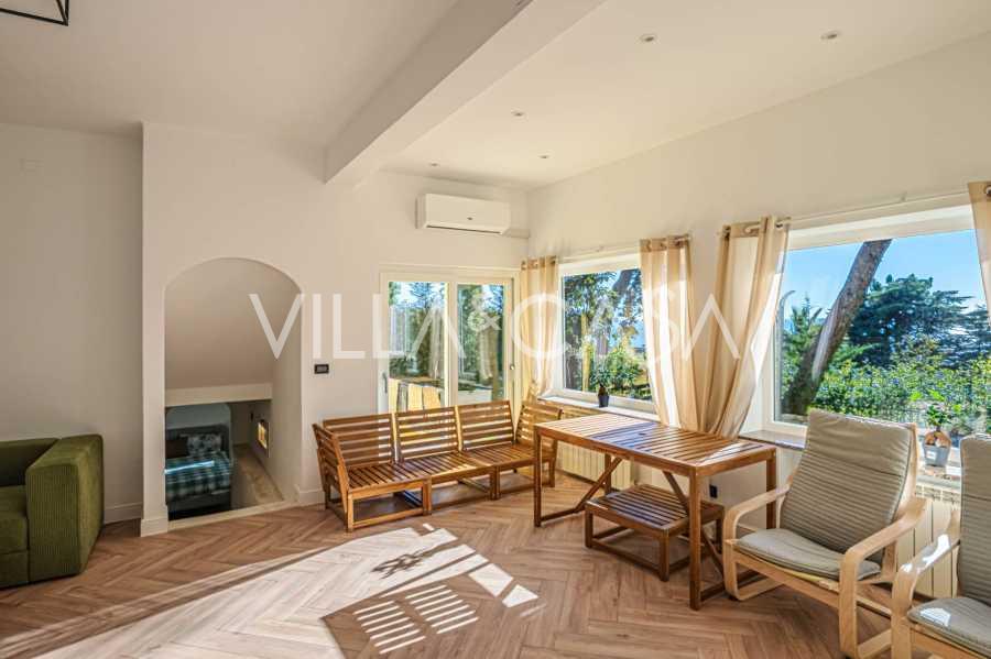 تغمر الفيلا في الخضرة: حديقة مُعتنى بها مع نباتات وزهور زينة، منطقة استرخاء في الهواء الطلق، بالإضافة إلى موقف خاص لثلاث سيارات. أضافت التجديدات الحديثة للمنزل لمسة من العصرية والنضارة، مع الحفاظ على الأناقة المتوسطية.