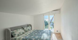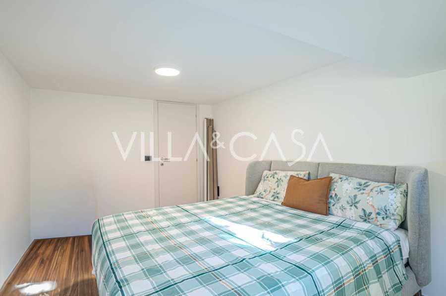 الطابق العلوي مخصص للمنطقة الخاصة بغرفتي نوم فسيحتين، كل واحدة منها تفتح على تراس ذو إطلالة بانورامية مذهلة. تخلق شروق الشمس وغروبها، المنعكسة في بحر ليغوريا، جوًا من الانسجام والرومانسية.