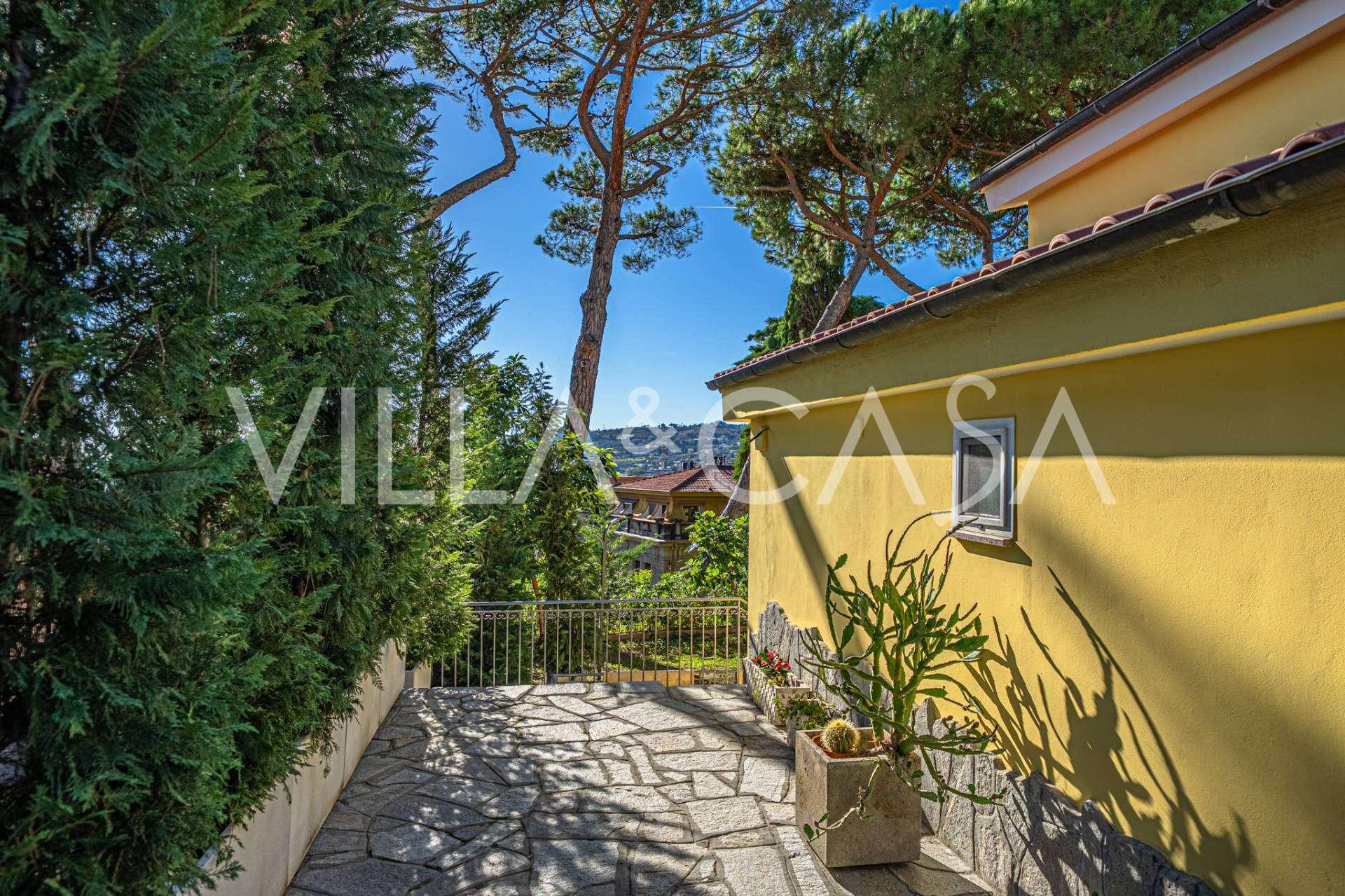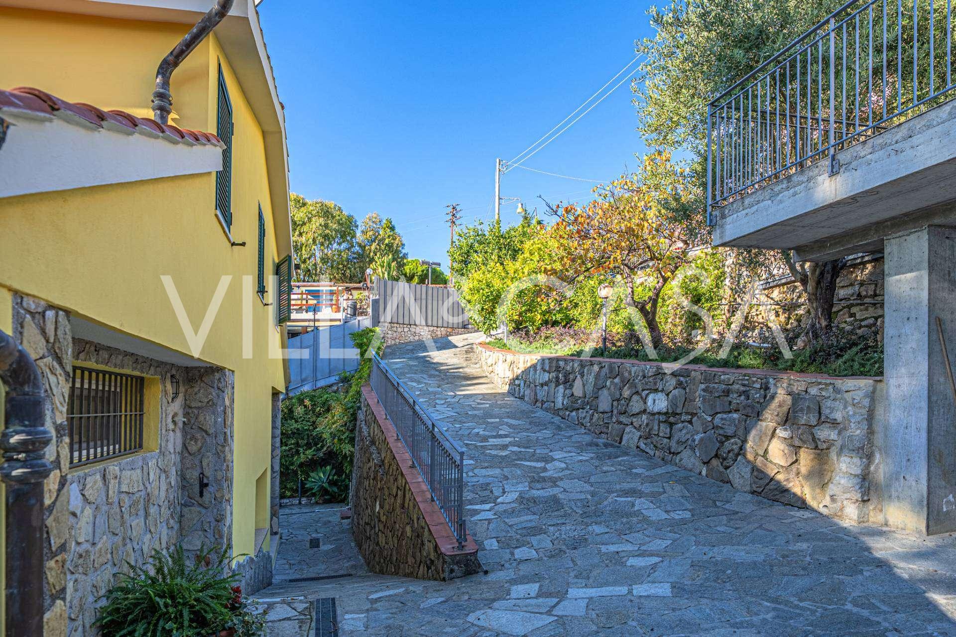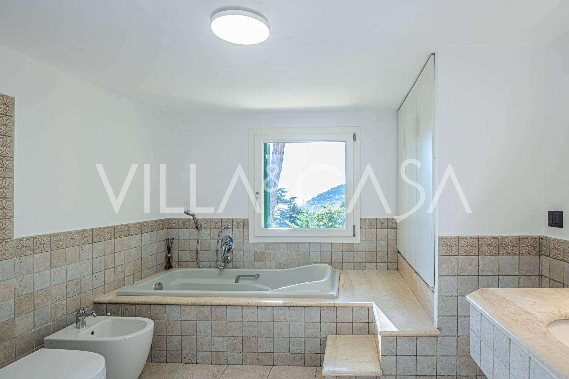 تقع الفيلا في منطقة سكنية هادئة، تتكون من ثلاثة مستويات وتحيط بها حديقة خاصة مُعتنى بها جيدًا، تقدم إطلالات ساحرة على البحر الأزرق والتلال الخضراء للساحل.
