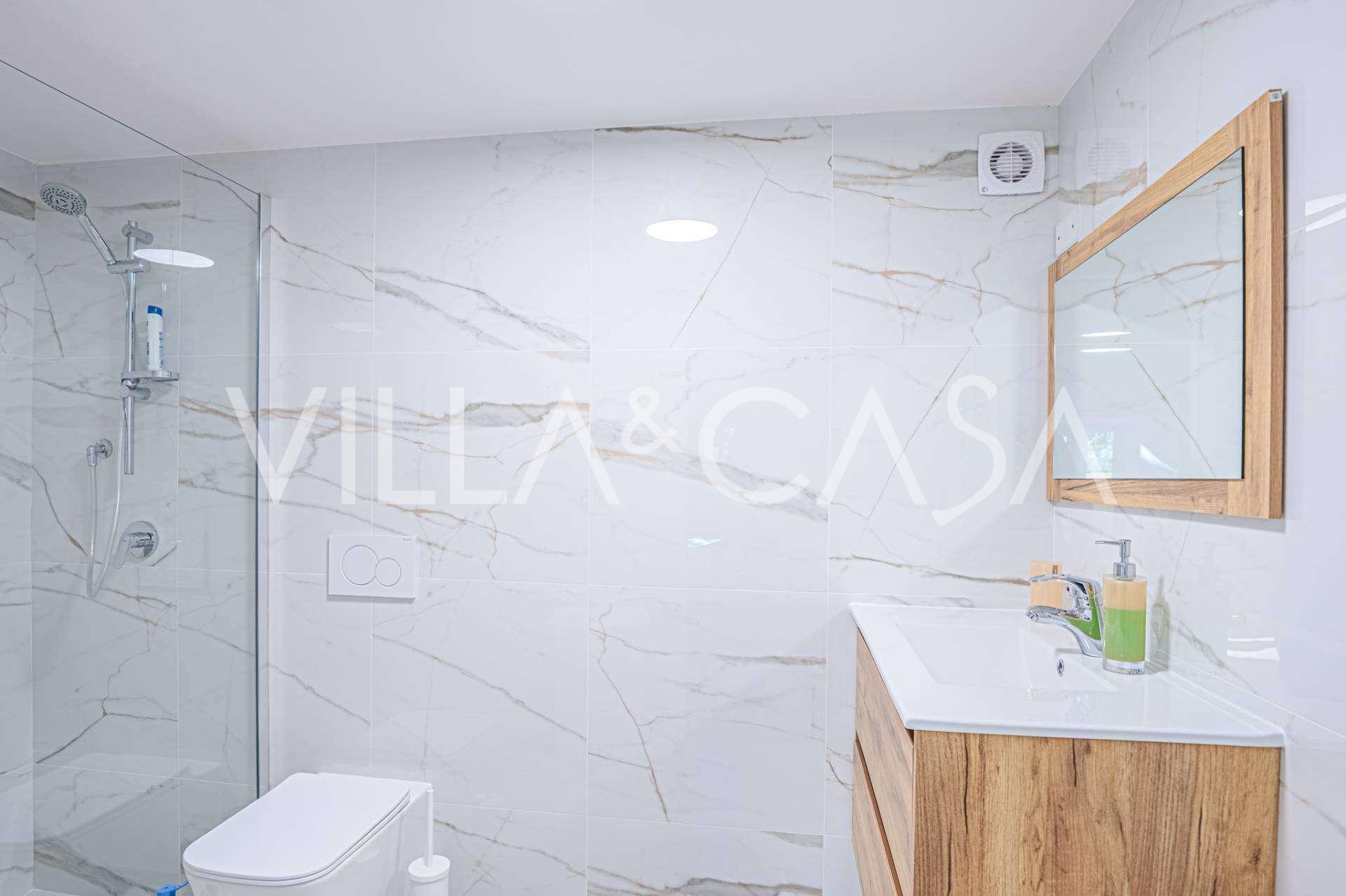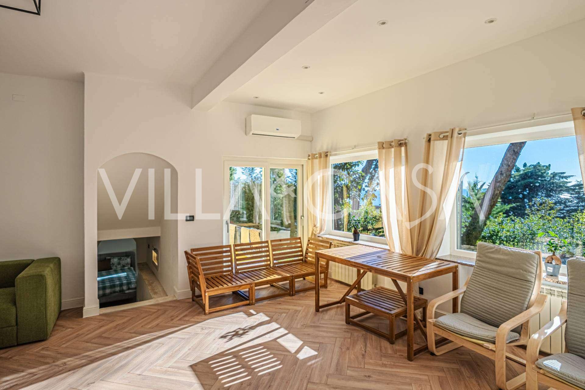 تغمر أراضي الفيلا بالخضرة: حديقة مُعتنى بها مع نباتات زينة، منطقة استراحة في الهواء الطلق وموقف خاص للسيارات يتسع لثلاث سيارات. أضافت التجديدات الأخيرة للمنزل سحرًا عصريًا مع الحفاظ على الأناقة الأصيلة للطراز المتوسطي.