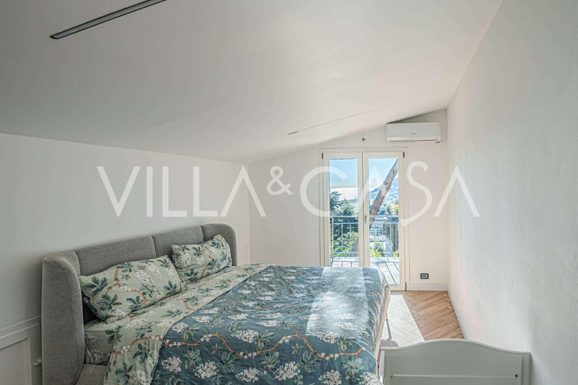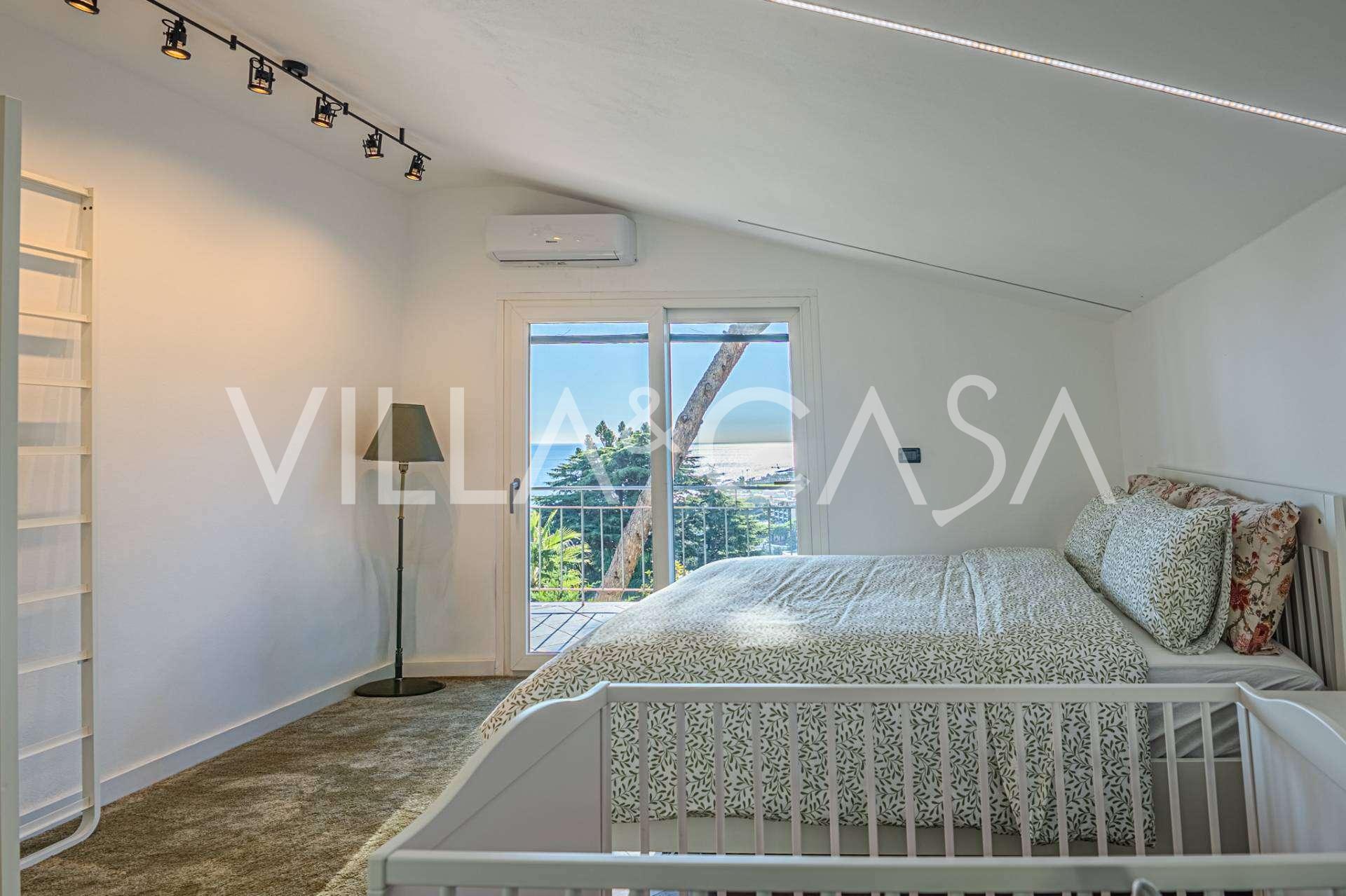 يمثل الطابق العلوي منطقة خاصة مع غرفتي نوم فسيحتين، كل واحدة منها تؤدي إلى تراس بإطلالة بانورامية مذهلة. تخلق شروق الشمس الصباحية وغروبها المسائي، المنعكسة في مياه البحر الليغوري، جوًا من السكينة والرومانسية.