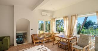 تقع الفيلا في منطقة سكنية هادئة، مكونة من ثلاثة طوابق، وتحيط بها حديقة خاصة مُعتنى بها، حيث تتيح مناظر ساحرة للبحر الأزرق والمنحدرات الخضراء للساحل.