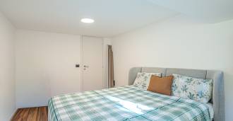 في الطابق السفلي توجد مساحات واسعة للخدمات: مخزن، حمام مريح ومساحة إضافية تحت الدرج، مثالية لتخزين النبيذ أو الأشياء الأخرى.