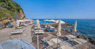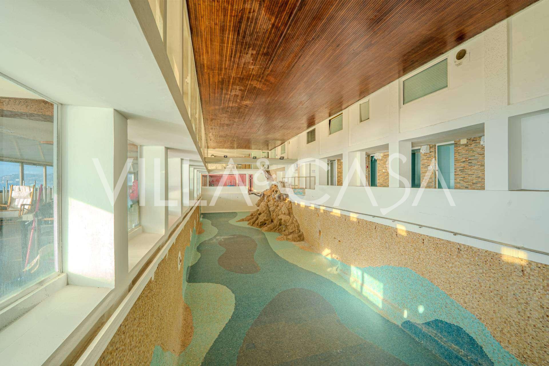 يتمتع الضيوف بحوض سباحة داخلي يبلغ طوله حوالي 25 مترًا مع مياه بحر دافئة. يحتوي الفندق أيضًا على شاطئ خاص مع وصول مباشر إلى البحر، يشتمل على حوض سباحة بمياه البحر ومنطقة بها كراسي استلقاء ومظلات، بالإضافة إلى شاطئ حصوي يتسع لـ 100-110 شخص، سواء لنزلاء الفندق أو الزوار الخارجيين. في موسم الصيف، يفتح بار للوجبات الخفيفة ومركز للجمال والعلاج بمياه البحر.