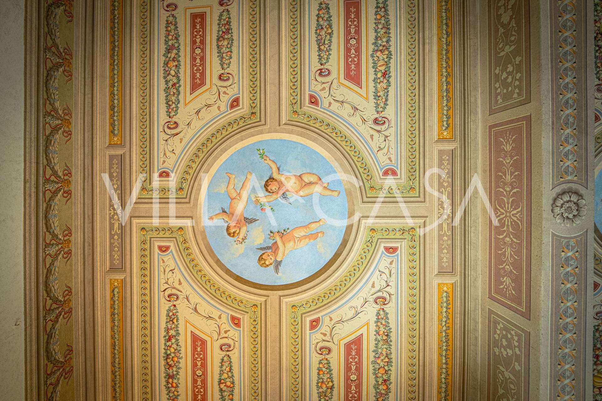 تشمل التصميمات الداخلية قاعات فاخرة وغرف طعام مزينة بلوحات جدارية قديمة ونوافذ كبيرة تطل على مناظر خلابة. كما تضم الإقامة: مصعد، كنيسة خاصة، قبو نبيذ حجري، سبع غرف نوم واسعة مع حمامات، مدافئ رائعة من العصور الماضية، تراسات حوالي 360 مترًا مربعًا، بما في ذلك تراس بانورامي وتراس على السطح يوفر إطلالة دائرية على التلال الخضراء المحيطة.