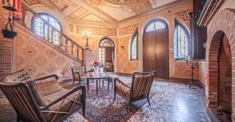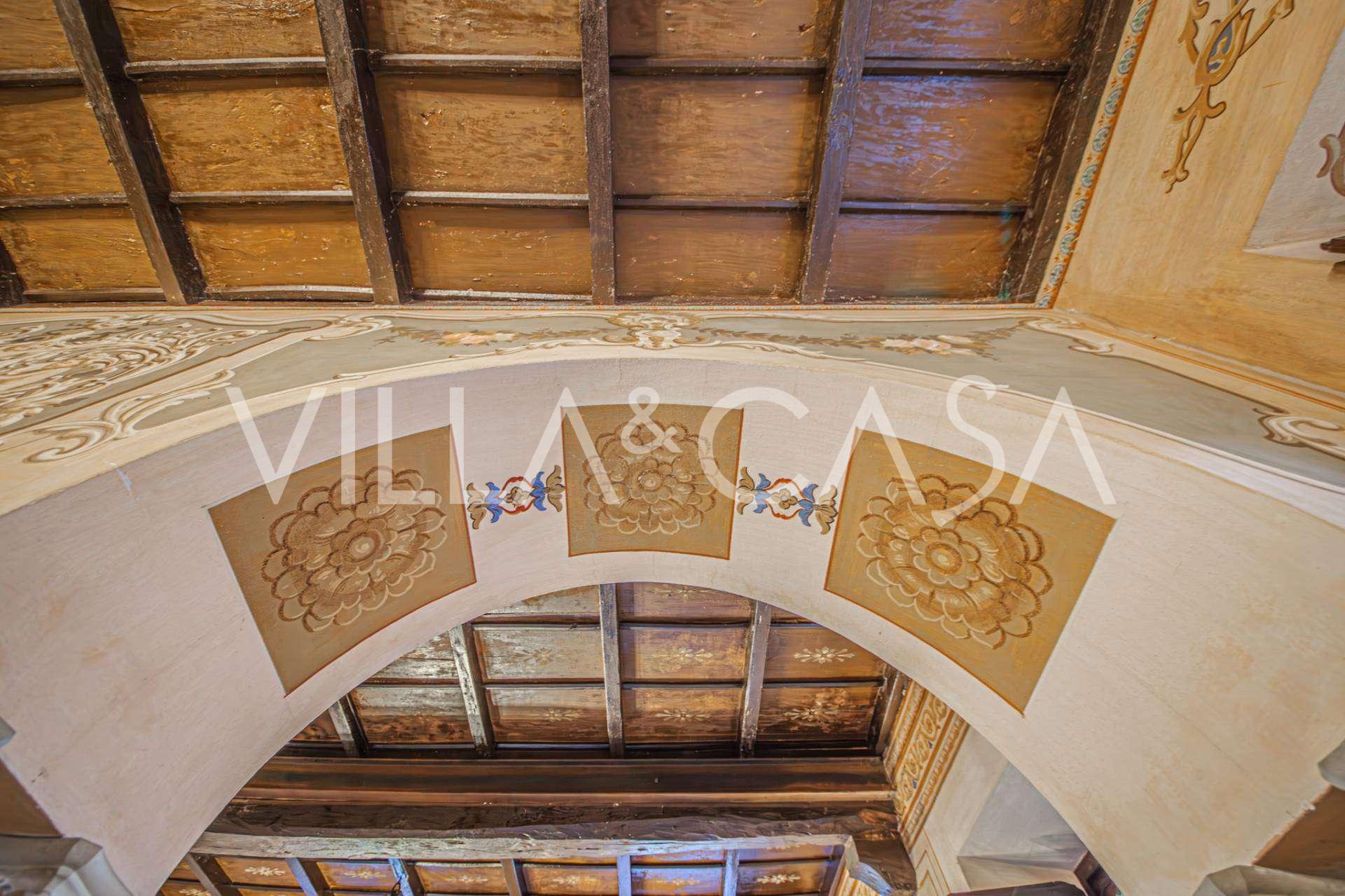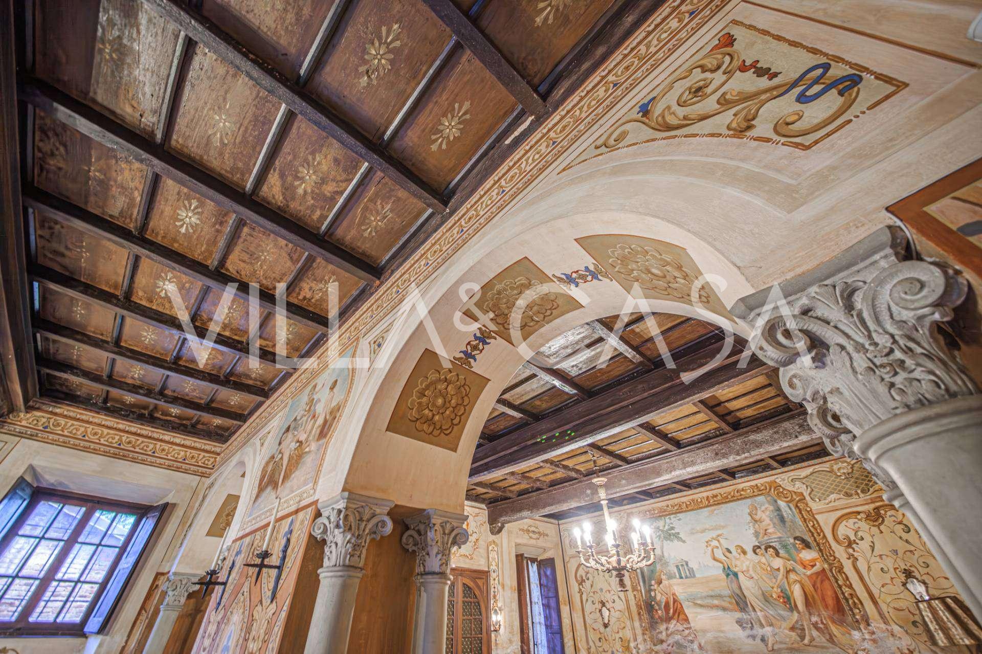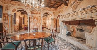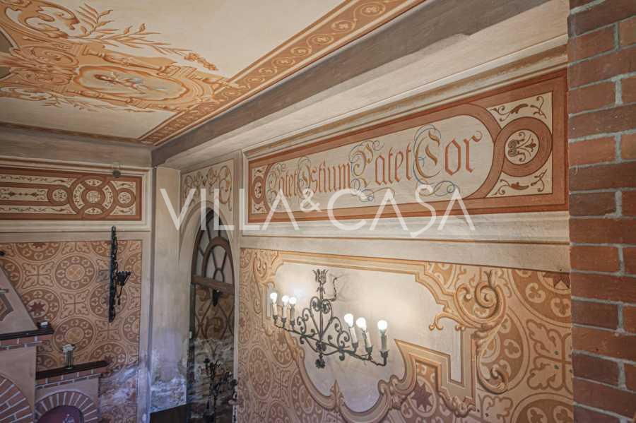 تم تنفيذ تشطيبات القلعة بأسلوب كلاسيكي أنيق: الخشب الطبيعي، والجداريات الأصلية، والبناء بالطوب، وأرضيات التيرازو، والحديد المطاوع تخلق تناغمًا راقيًا يعكس روح وأجواء المزارع البيمونتية القديمة.