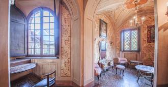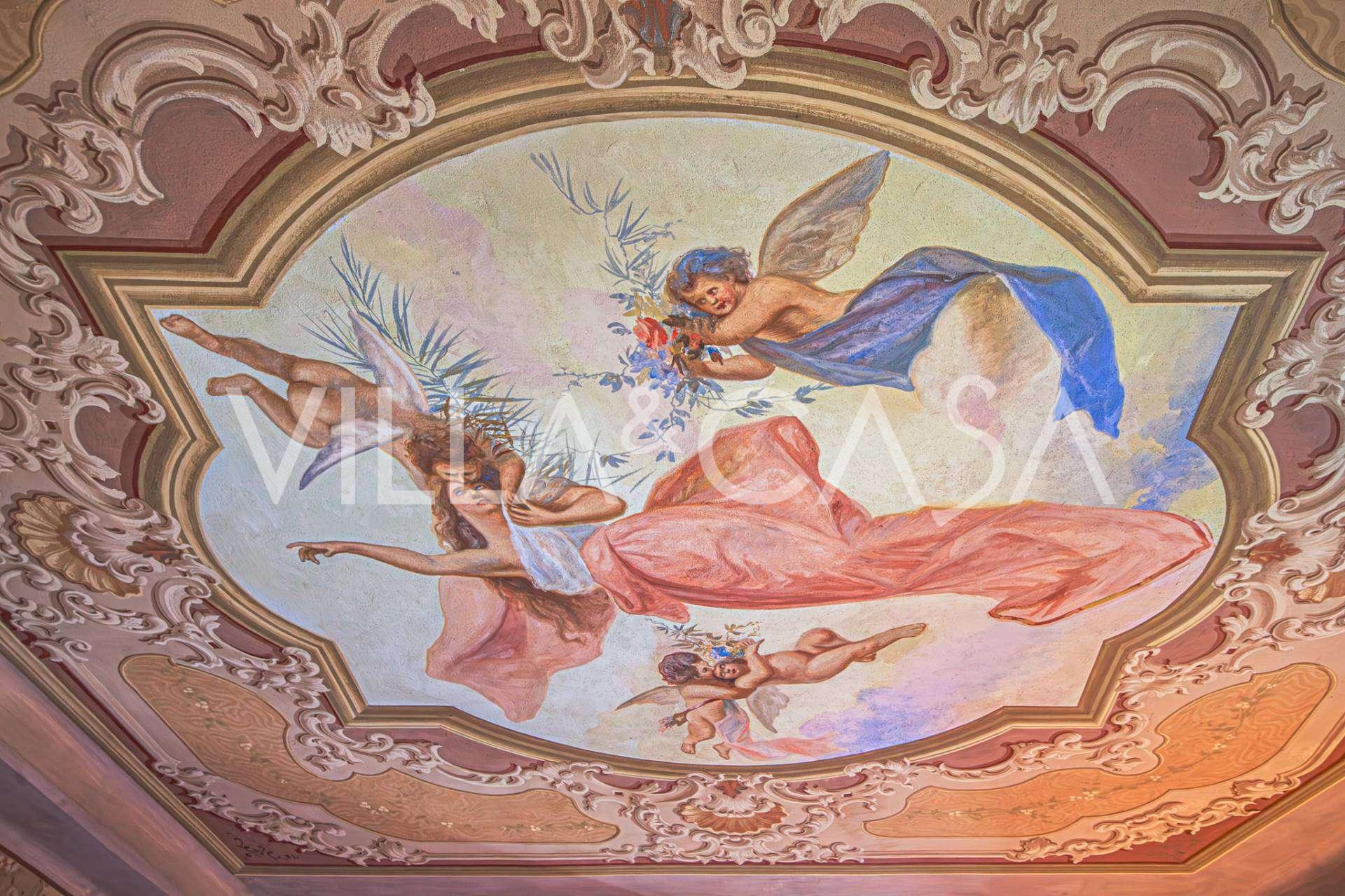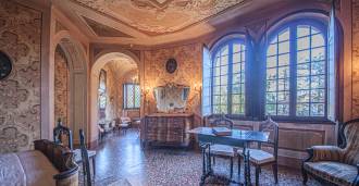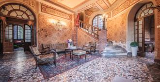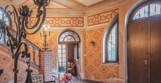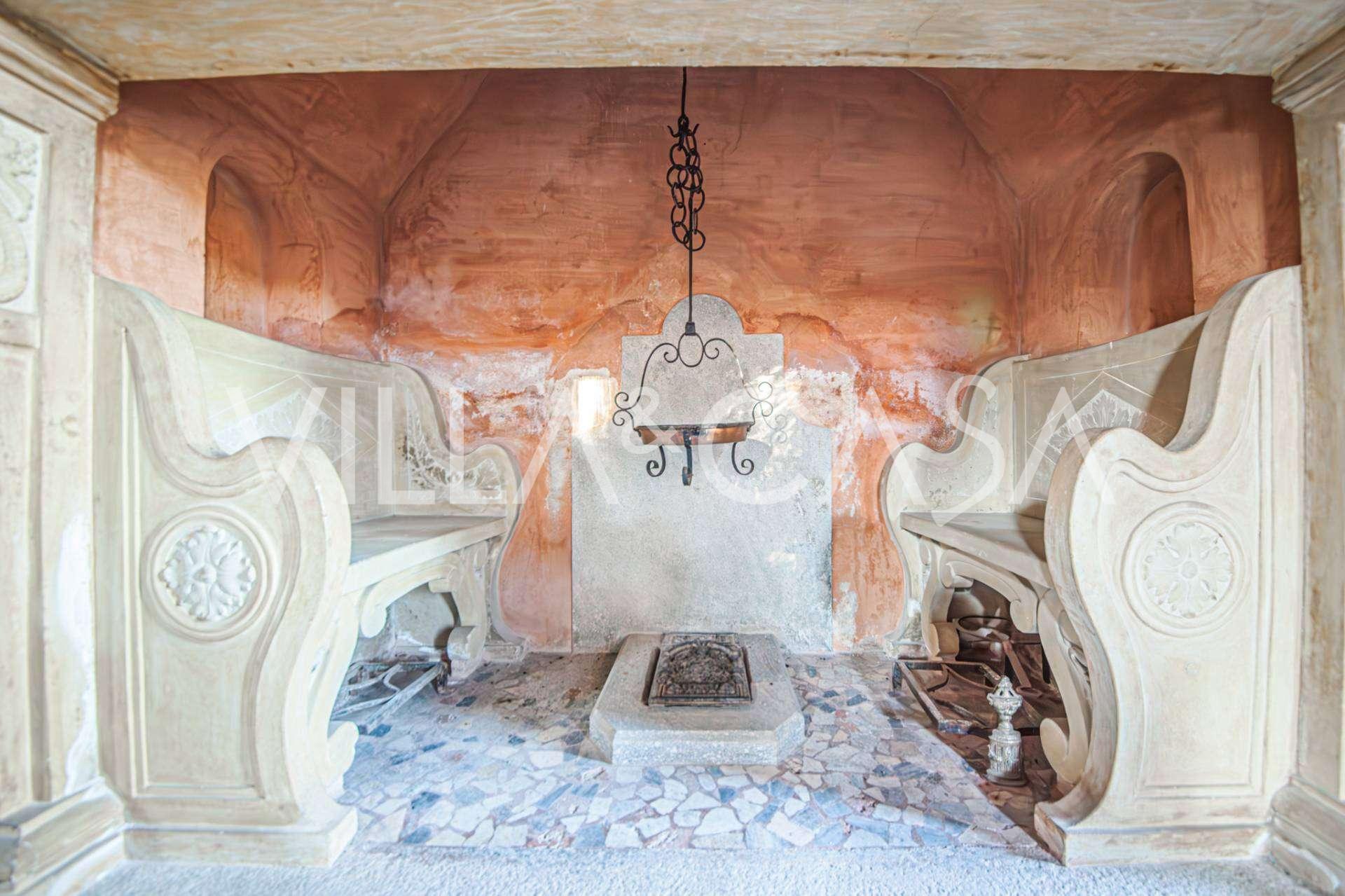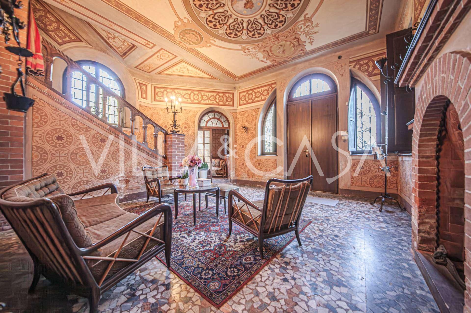 تم تنفيذ تشطيبات القلعة بأسلوب كلاسيكي أنيق: الخشب الطبيعي، والجداريات الأصلية، والبناء بالطوب، وأرضيات التيرازو، والحديد المطاوع تخلق تناغمًا راقيًا يعكس روح وأجواء المزارع البيمونتية القديمة.
